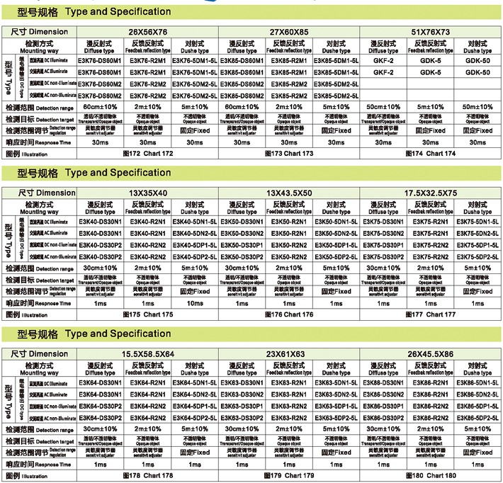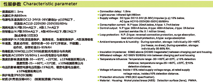 接近、光电开关产品型号命名及含义说明 接近开关基本参数及电气特性 光电开关基本参数及电气特性