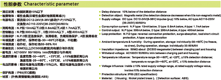 接近开关基本参数及电气特性